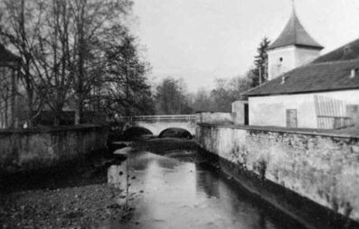 ca. 1931 Heiligenkreuz, Brücke über den Sattelbach.
