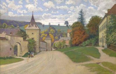 Aquarell des Gemeindehauses mit Grubertor (Aquarell von Anna Mayer - eine Vorfahrin oder Verwandte von Martha Rössler geb. Klenert).