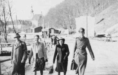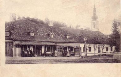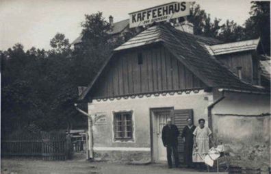 Heiligenkreuz - Kaffeehaus "Zur Schmiede" (Klenert), darunter Bürgermeister Alexander Santulik jun. um 1927 (Foto aus Besitz Martha Rössler).