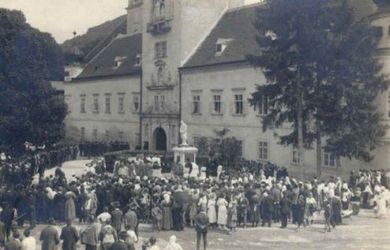 Heiligenkreuz - Einweihung des Kriegerdenkmales im Jahre 1922 (Foto aus Besitz Martha Rössler).